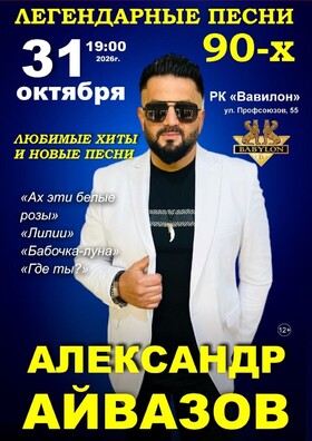Погрузитесь в атмосферу легендарных 90-х!!! Александр Айвазов — голос, знакомый миллионам, исполнит свои главные хиты, которые звучали в каждом доме и до сих пор трогают сердца.